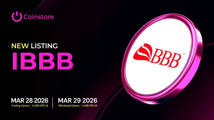 🚀 Thông báo niêm yết Coinstore | $IBBB Chúng tôi rất vui mừng thông báo rằng $IBBB sẽ được niêm yết trên Coinstore! 🔹 Cặp giao dịch: IBBB/ USDT ⏰ Lịch trình chính (UTC+8): Thời gian nhận tiền gửi: 28 tháng 3, 11:00 Giao dịch bắt đầu: 28 tháng 3, 11:00 Thời gian rút tiền bắt đầu: 11:00 ngày 29 tháng 3 🔗 Chi tiết: support.coinstore.vip/hc/en-us...… Hãy sẵn sàng giao dịch 🔥 #Crypto #Coinstore #Listing #IBBB