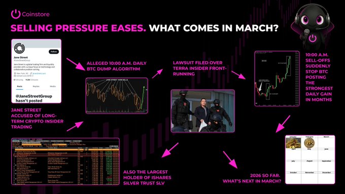 🧐Chuyện quái gì đang xảy ra vậy?!? Áp lực bán dai dẳng đè nặng lên thị trường này trong nhiều tháng dường như đã biến mất gần như chỉ sau một đêm. Cấu trúc đang thay đổi, và ánh sáng cuối đường hầm đang dần hiện ra. 🛫 Tháng Ba có thể đánh dấu bước ngoặt. Mục tiêu BTC của bạn cho tháng 3 là bao nhiêu?🆙