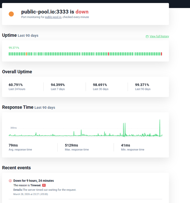 🚨 http:/public-pool.io bị sập hơn 9 tiếng 😂Nghe nói họ chỉ còn 2 tuần nữa là sở hữu vũ khí hạt nhân! Luôn luôn chuẩn bị sẵn một pool dự phòng nhé mọi người. Các lựa chọn đáng tin cậy: ✅ CKPool – pool solo OG đã được kiểm chứng ✅ Atlas Pool – Toàn cầu, đáng tin cậy, độ trễ thấp 🔗solo.ckpool.org 🔗atlaspool.io
