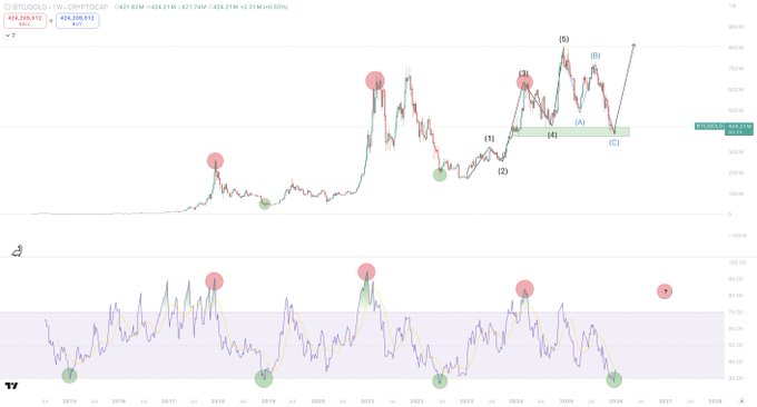 Hiện tại, Bitcoin đang di chuyển rất giống với cách vàng đã di chuyển trước khi bứt phá mạnh mẽ, dẫn đến việc vốn hóa thị trường tăng thêm 25 nghìn tỷ đô la và chỉ số RSI hàng tháng đạt kỷ lục do đường cong parabol quá lớn.