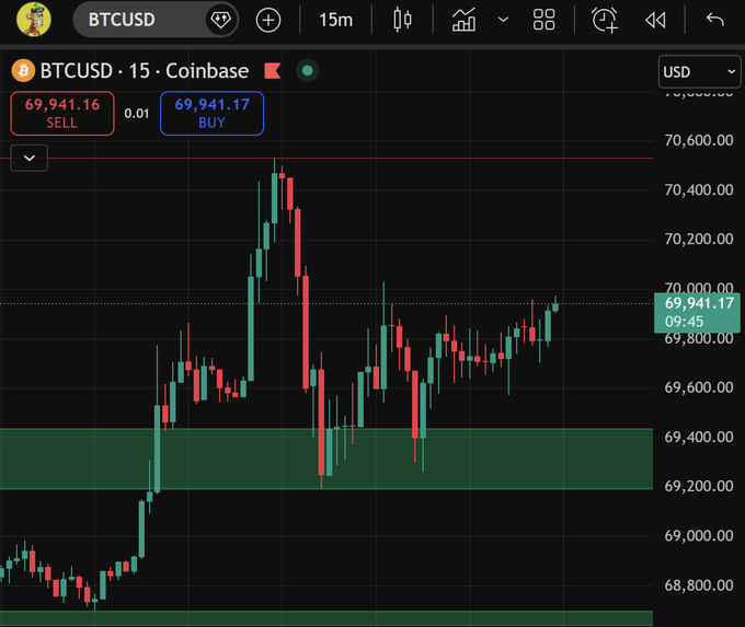 Bitcoin đang cố gắng vượt mốc 70.000 đô la Nó đã thử vài lần rồi nhưng vẫn chưa vượt qua được Một cú bứt phá mạnh mẽ trên mốc 70.000 đô la và giữ vững mức giá này có thể đẩy nó lên cao hơn Bạn nghĩ Bitcoin sẽ đạt 75.000 đô la vào cuối tuần này không?