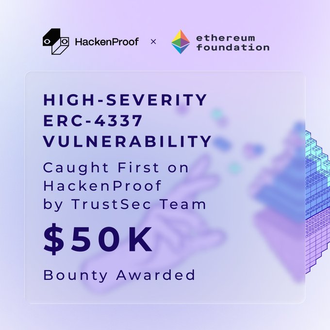HackenProof tự hào đóng góp vào công tác bảo mật của @erc4337. Thông qua chương trình săn lỗi nhận tiền thưởng của chúng tôi, @TrustSec đã phát hiện ra một cuộc tấn công DoS mức độ nghiêm trọng cao trong Yêu cầu bình luận Ethereum (ERC)-4337 — cho phép chặn giao dịch thông qua tấn công frontrunning và thao túng trạng thái hợp đồng (ví dụ: các cơ chế bảo vệ khả năng tái nhập), gây ra hiện tượng hoàn tác trong khi người dùng vẫn phải trả phí gas. twitter.com/HackenProof/status...
