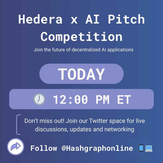 Đếm ngược đã bắt đầu! Chỉ còn chưa đầy 5 phút nữa, Cuộc thi Hedera x AI Pitch sẽ chính thức khởi động! Hãy sẵn sàng thỏa sức sáng tạo, giao lưu với những bộ óc xuất chúng và tranh tài giành giải thưởng 100 đô la! Theo dõi hashgraph Online x.com/HashgraphOnline #Web3 #AI #Hackathon Hedera