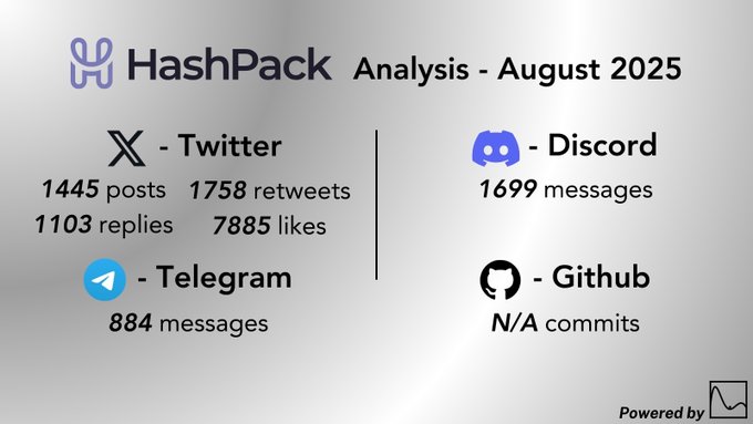 Cùng khám phá dữ liệu cộng đồng @HashPackApp trong tháng 8 năm 2025! 🎒 Hoạt động Telegram của họ đã tăng 11,3%! Xem thêm thông tin chi tiết: http:/mopsos.ai/dashboard/hash...… $PACK