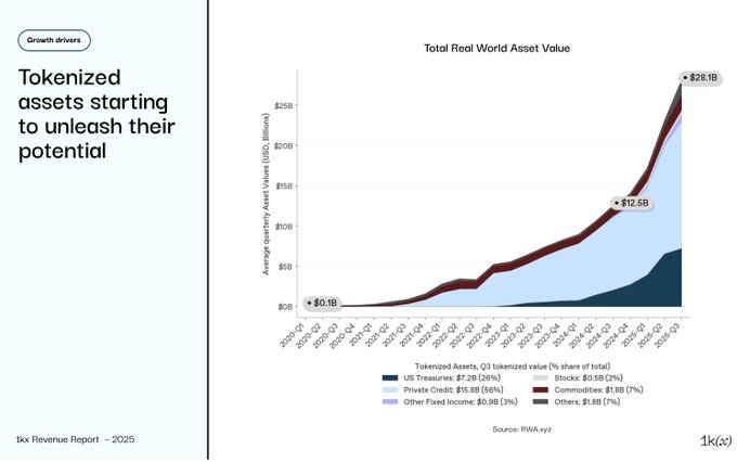 Các biểu đồ quan trọng nhất của chuỗi năm 2025: Tất cả các lĩnh vực RWA đều đang tăng trưởng. Mã hóa token là một luận điểm lớn. Mới → Đang nổi lên → Siêu mở rộng → Đã được thiết lập. RWA chắc chắn sẽ tồn tại. Tin tốt.