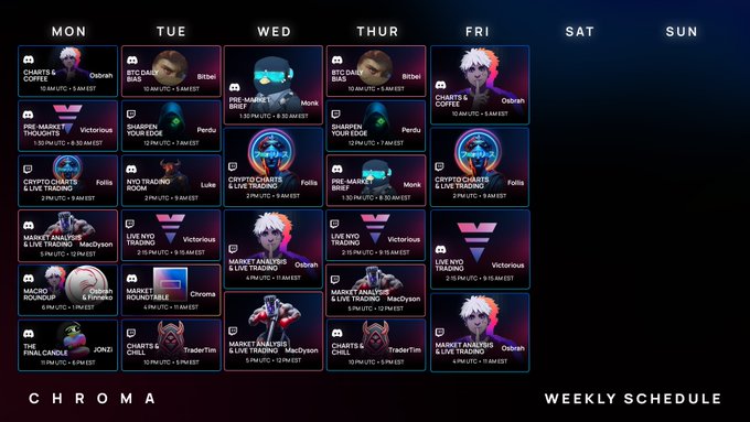 Lịch trình hàng tuần của Chroma | 9 - 15 tháng 2 🗓️ Một tuần nữa trôi qua, lịch trình lại bận rộn Rất hào hứng với bản tin tổng hợp thị trường đặc biệt hôm nay cùng @finneko_prgrm 🔥 Chỉ có tại #ChromaTrading
