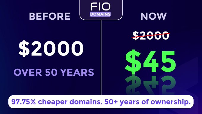 gm Web3! Bảo mật tên miền FIO của bạn trong hơn 50 năm với chi phí tối thiểu. Quyền sở hữu thực sự, không cần gia hạn. ♾
