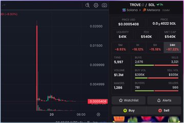 @TroveMarkets đã huy động được 11,5 triệu đô la nhờ đăng ký mua vượt mức dự kiến, nhưng giá trị giao dịch cuối cùng (FDV) khi ra mắt lại dưới 1 triệu đô la, và hiện chỉ đạt 500.000 đô la FDV vài giờ sau khi ra mắt.