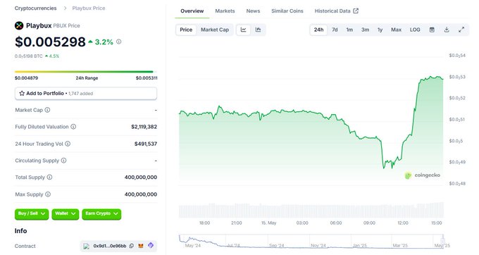 $PBUX Có vẻ lạc quan 🚀 Đột phá mạnh + khối lượng giao dịch tăng = tải trọng cất cánh 🚀 Ngoài ra, Bux Royale vừa gia nhập vào vũ trụ 88 triệu người dùng của LINE + Máy ảo Ethereum (EVM) hàng đầu của Kaia! 💥 Chỉ có 70 Các ứng dụng phi tập trung (DAPPS) trong số hơn 2.000 dApp được chọn và $PBUX đã được chọn!! GameFi vừa trở nên thực tế. 🏆 twitter.com/profcryptotalks/st...