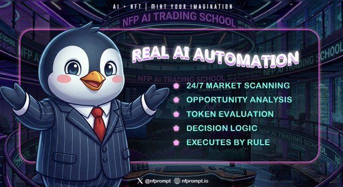 Trường Đào tạo Giao dịch AI NFP — Kiến thức cơ bản về Giao dịch AI 1/2 🧵 Hôm nay chúng ta sẽ nói về tự động hóa. Tự động hóa AI không chỉ đơn thuần là một bot hỗ trợ người dùng giao dịch. Một hệ thống giao dịch AI thực sự sẽ kiểm tra thị trường, phân tích token, quyết định thời điểm hành động và thực hiện theo quy tắc. Xem thêm bên dưới 👇 $NFP twitter.com/nfprompt/status/20...