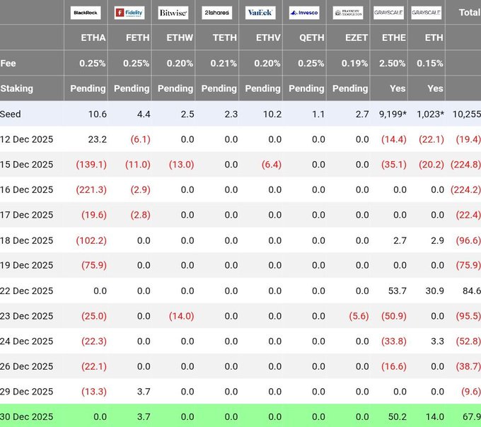 $ETH Dòng tiền vào ETF đạt 67.900.000 USD 🟢 ngày hôm qua. Grayscale đã mua 64.200.000 USD Ethereum.