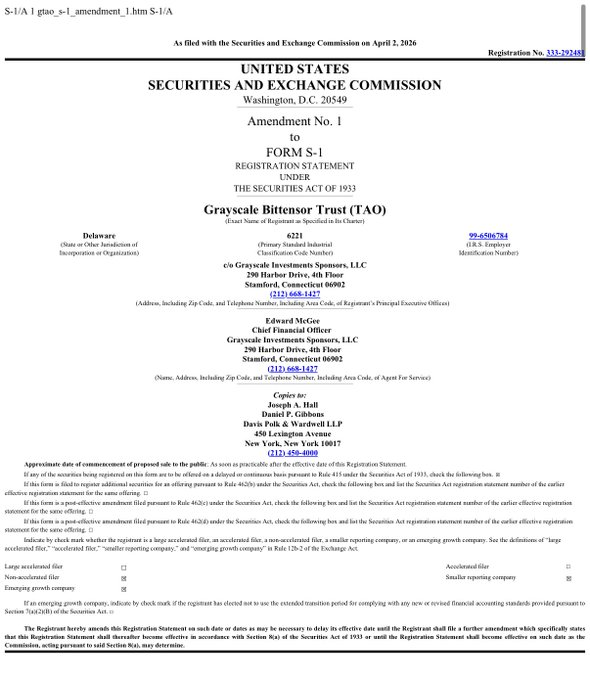 #Grayscale đã nộp đơn đăng ký S-1 sửa đổi cho quỹ tín thác Bittensor ( $TAO) của mình. #CoinPedia #CryptoNews #Blockchain #CryptoMarket
