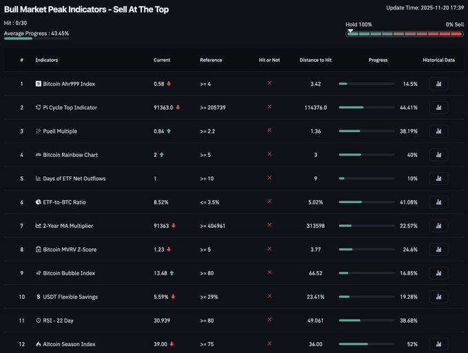 Tính đến thời điểm hiện tại, 0 trên 30 chỉ báo đỉnh điểm của thị trường Bull đã đạt được.