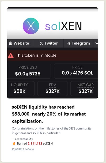 +2,111,112 <solXEN> đã bị đốt trên memo.rip - ký ức trên #<Solana> -> tái sinh trên #<X1> ================ Thanh khoản của <solXEN> đã đạt 58.000 USD, gần 20% vốn hóa thị trường của nó. Chúc mừng các mốc quan trọng của cộng đồng <XEN> nói chung và <solXEN> nói riêng.