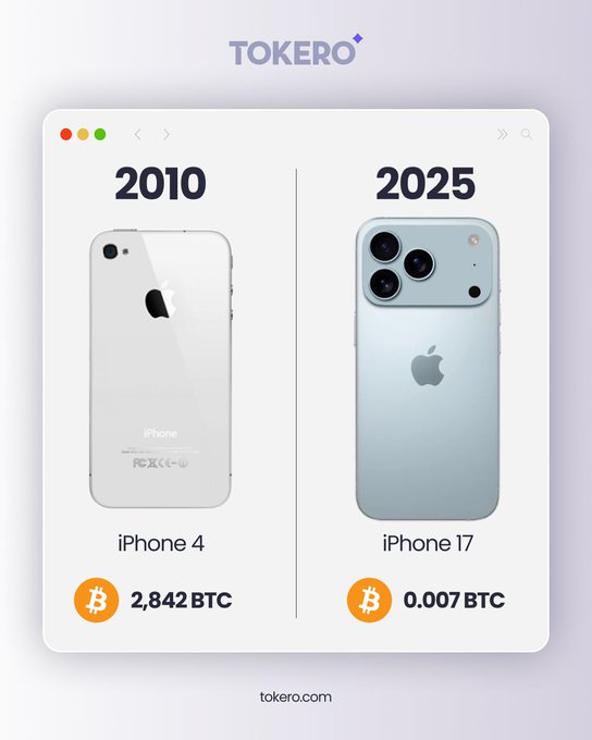 📱🚀 Apple vừa ra mắt iPhone 17. Trở lại năm 2010, một chiếc iPhone 4 có giá 2.842 BTC. Ngày nay, iPhone 17 chỉ có giá 0,007 BTC. Đó chính là sức mạnh của #Bitcoin. ⏳💎 NẮM GIỮ > Hội chứng sợ bỏ lỡ (FOMO).