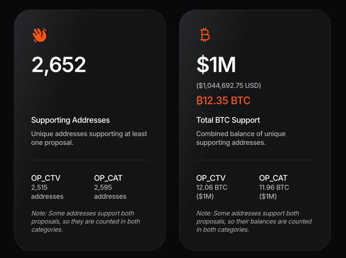 1 triệu đô la từ 2.652 địa chỉ ủng hộ OP_CAT/OP_CTV và đang phát triển.
