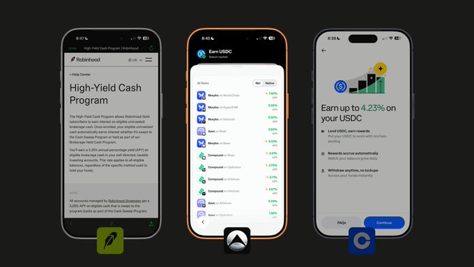 Bạn muốn kiếm được nhiều tiền hơn từ số tiền hiện có? Có một sự lựa chọn rõ ràng, và đó là quyết định của bạn. Tỷ giá USDC hiện tại: 🥇 7.40% @legendapp 🥈 4,23% @coinbase 🥉 3.25% @RobinhoodApp