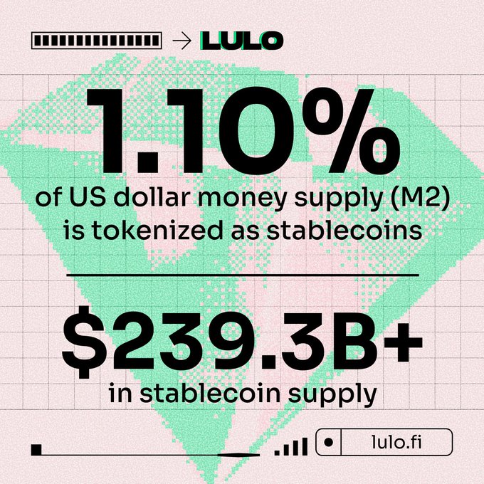 Tính đến ngày hôm qua, 1,1% nguồn cung tiền M2 của Hoa Kỳ được mã hóa dưới dạng Stablecoin. MCap của Stablecoin trên @ Solana: 11,79 tỷ đô la twitter.com/uselulo/status/192...