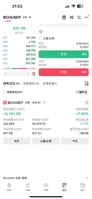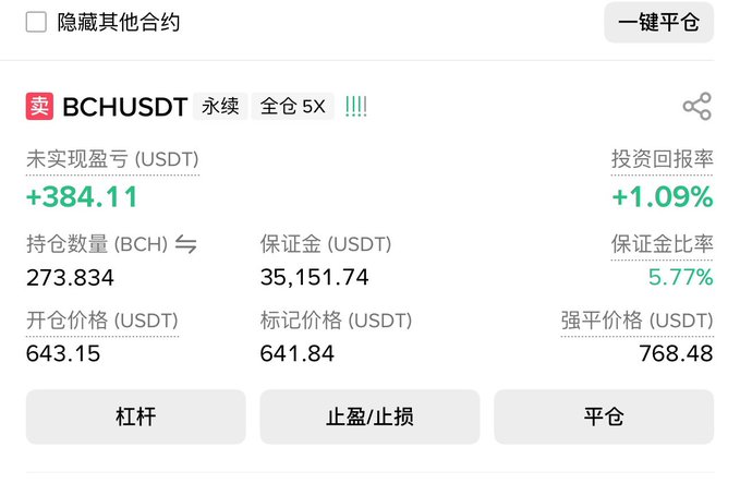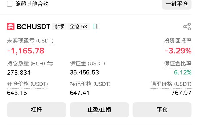 Tôi vẫn đang giữ lệnh short BCH, nhưng việc này thật lãng phí thời gian. Tôi dự định đầu tư 20.000 USDT mỗi tháng vào lệnh short BCH của mình trong ba tháng, với mục tiêu đạt vị thế 100.000 USDT.