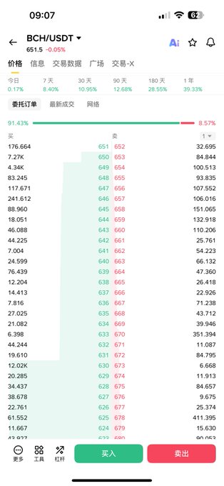 BCH đang thực sự mạnh, với lượng lệnh mua lượng lớn và rất ít lệnh bán. Lệnh mua lớn hơn lệnh bán nhiều lần.
