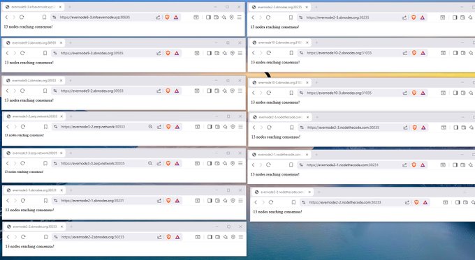 Tất cả 13 nút trong cụm đều phục vụ theo cách phi tập trung cho việc bỏ phiếu và đồng Consensus về tập tin/nội dung/sổ cái. @EvernodeXRPL + @XahauNetwork