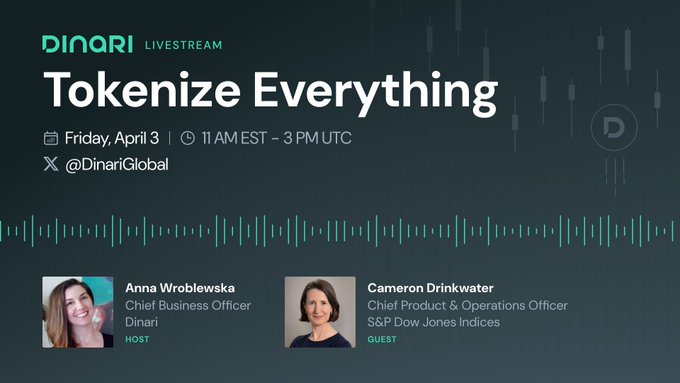 Các chỉ số chuẩn xác định thị trường. Vào ngày 3 tháng 4, Token hóa Everything sẽ trở lại với sự góp mặt của Cameron Drinkwater, Giám đốc Sản phẩm & Vận hành tại @SPDJIndices. Chúng ta sẽ thảo luận về cách các chỉ số thể chế được xây dựng và những điều cần thiết để đưa tiêu chuẩn đó lên chuỗi khối. Ngày 3 tháng 4 | 11 giờ sáng giờ ET