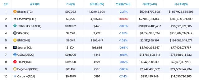 [Bản tin thị trường buổi sáng] Thị trường crypto đang có xu hướng giảm… Bitcoin ở mức 92.048 đô la, Ethereum ở mức 3.220 đô la