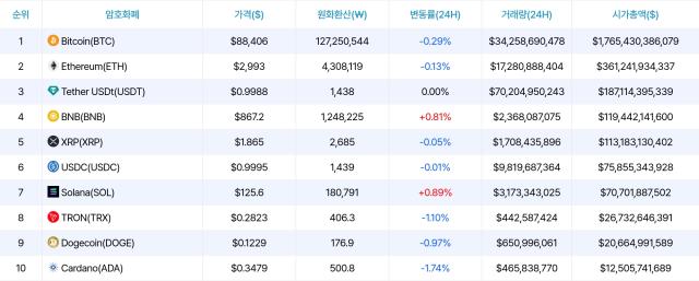 [Bản tin thị trường nửa đêm] Thị trường crypto động trái chiều... Bitcoin ở mức 88.370 đô la, Ethereum ở mức 2.989 đô la