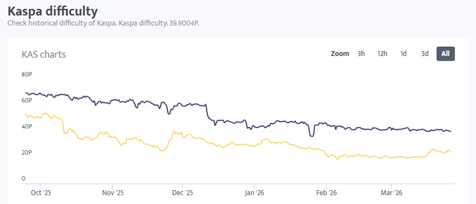 Trong khi nhiều người nhìn thấy thị trường gấu và sự hoảng loạn lan rộng, tôi lại nhìn thấy những cơ hội 👀 Cả Độ khó của đào của $KAS và giá của nó đều đang ở mức thấp nhất trong một năm. Điều đó có nghĩa là đây là thời điểm tốt nhất để vừa khai thác vừa mua nó ⛏️