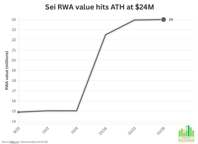 Giá trị RWA của @SeiNetwork đã đạt mức cao mới là 24 triệu đô la, sau khi tích hợp với @Securitize và @KAIO_xyz