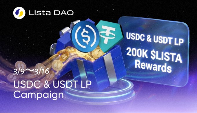 - Phần thưởng NHÀ CUNG CẤP THANH KHOẢN USDC & USDT: 200K $LISTA