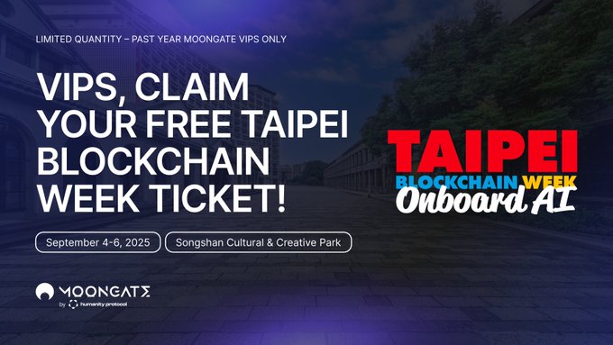 Cơ hội cuối cùng! Những người sở hữu vé VIP Moongate, đừng bỏ lỡ Tuần lễ Blockchain Đài Bắc. 🔥 Nhận vé miễn phí chỉ với 3 bước đơn giản: 1️⃣ Truy cập trang TBW 2️⃣ Đăng nhập bằng Moongate 3️⃣ Đặt vé ngay hôm nay Đặt chỗ ngay 👇 app.moongate.id/e/taiwan-block...…