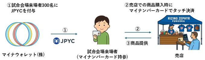 Trò chơi Rising Zephyr Fukuoka sẽ diễn ra vào cuối tuần này! Trong khi còn hàng, chúng tôi sẽ tặng JPYC trị giá ¥1,000 cho người tham dự (người chơi thử) theo nguyên tắc ai đến trước được trước! Chạm thẻ My Number của bạn vào thiết bị stera, dùng JPYC để mua hàng hóa, đồ ăn và thức uống, và cùng hào hứng với trò chơi nào! 🔥🔥