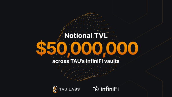 Chúc mừng TAU x @infiniFi Vault Tổng giá trị khóa (TVL) Cao nhất mọi thời đại cho những ai đang ăn mừng (chúng ta) 50.000.000 đô la