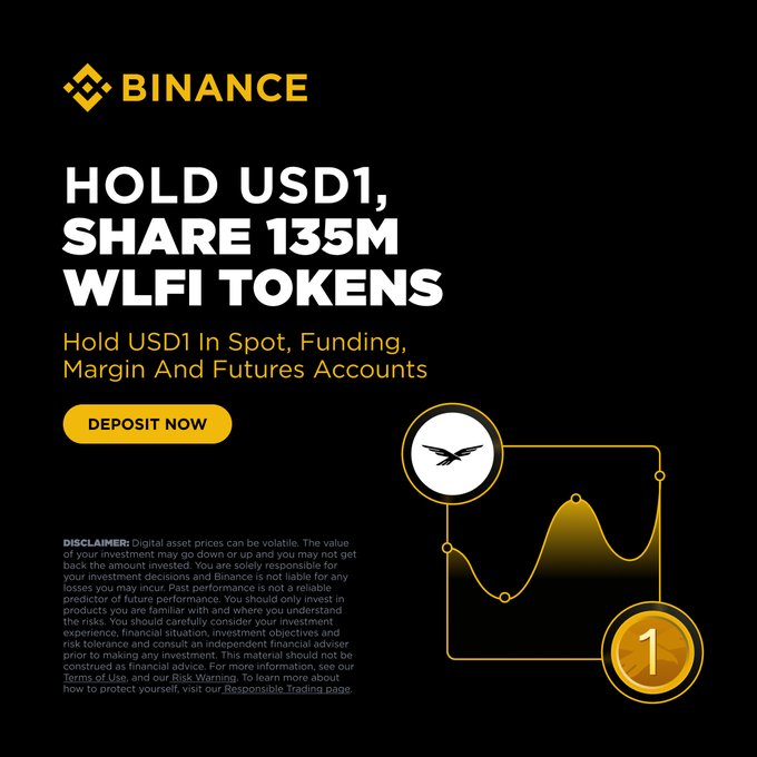 🦅 Chúng tôi không dừng lại. Chiến dịch mới, luật chơi vẫn vậy. Tổng vốn 135 triệu USD. Không giới hạn. Giữ 1 USD trên @binance và chia sẻ $WLFI. Chiến dịch USD1 x @binance diễn ra đến hết ngày 17 tháng 4. ☝️ twitter.com/worldlibertyfi/sta...