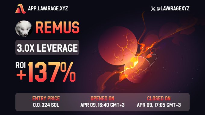 APE’d $REMUS với đòn bẩy 3,0x trên http:/app.lavarage.xyz/?ref=qN... 🚀 Cảm ơn @lavaragexyz @sns #SolanaAirdrop CA: EiKZAWphC65hFKz9kygWgKGcRZUGgdMmH2zSPtbGpump
