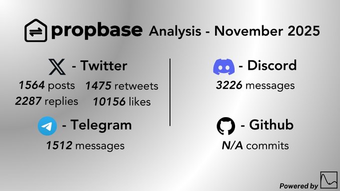 Hãy cùng tìm hiểu dữ liệu cộng đồng của @PropbaseApp trong tháng 11 năm 2025! 🏡 Hoạt động trên Telegram và Discord của họ đã tăng lần lượt 13,3% và 5,8%! Thông tin chi tiết hơn: http:/mopsos.ai/dashboard/prop...… $PROPS