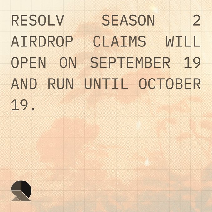 Airdrop Resolv Mùa 2 Snapshot của Phần 2 được chụp vào ngày 8 tháng 9, lúc 23:59 UTC. Điểm được tính theo cách hồi tố, người dùng không cần thực hiện hành động nào. Việc khiếu nại sẽ bắt đầu vào ngày 19 tháng 9 và kéo dài đến ngày 19 tháng 10.