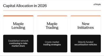 Đây vẫn là hoạt động kinh doanh cốt lõi của Maple. Là một trong những nhà cho vay hàng đầu cho các tổ chức tiền điện tử, giao thức này đặt mục tiêu tăng thị phần đồng thời mở rộng cơ sở người vay sang các DAT, công ty Đào coin và sàn giao dịch. Hiện tại, Maple có thể cho vay lên đến 500 triệu đô la, cho phép họ phục vụ các khách hàng tổ chức lớn hơn.