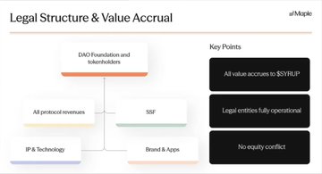 Maple đã lường trước những vấn đề này từ sớm và xây dựng giao thức theo cách khác. Nhóm chưa bao giờ huy động Quỹ đầu tư mạo hiểm thông qua một thực thể vốn chủ sở hữu. Thay vào đó, quyền sở hữu và tham gia vào sự phát triển của Maple được gắn trực tiếp với Token $SYRUP.