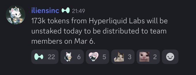 Mặc dù họ có thể rút 9 triệu $HYPE (250 triệu đô la) mỗi tháng kể từ tháng 11 năm ngoái (như đã lên kế hoạch tại Thời điểm phát hành token (TGE)), nhưng một lần nữa họ chỉ chọn rút 173 nghìn $HYPE (4,8 triệu đô la) và phân phối cho 12-15 thành viên nhóm.