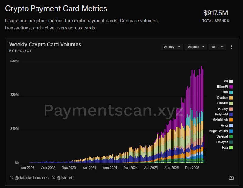 Theo bảng xếp hạng hàng tuần của Paymentscan, Ethereum đứng thứ nhất, trong khi Tria đứng thứ 2.