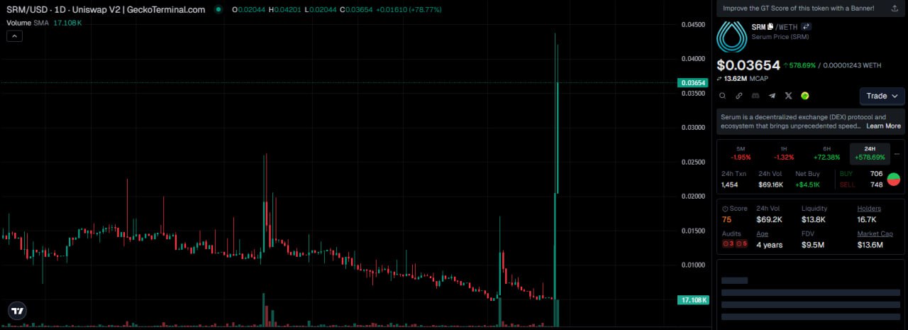 Anh em ai còn nhớ con hàng cổ đại SRM không? Thời đó làm mưa làm gió hệ Sol được Alameda rót vốn, FTX phá sản xong team bỏ dự án luôn. Đùng phát dựng cột x8 chỉ trong 2 ngày 😂