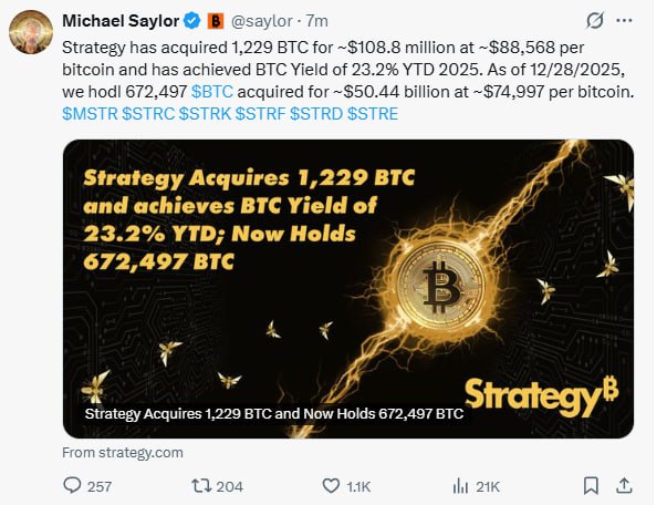 MicroStrategy tiếp tục mua 1,229 $BTC (~ $109M) ở mức giá trung bình $88,568 Tăng giảm không quan trọng, vẫn cứ múc rất đều 🚀 @margintradingTCVN