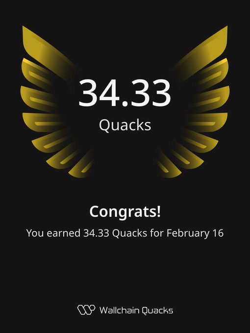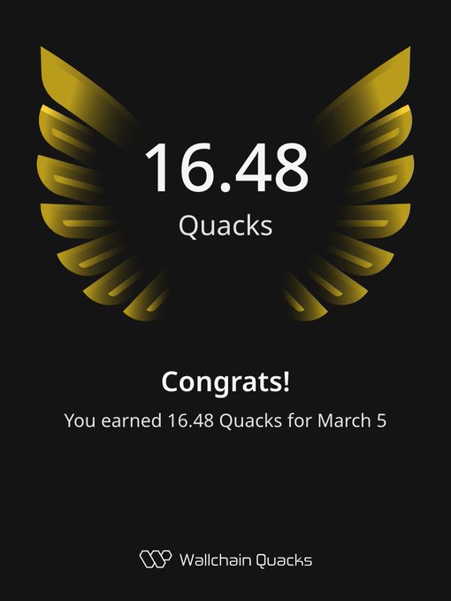 Wow, Được chiều chuộng quá, kiếm được 34,33 Quacks trên @wallchain chỉ trong một ngày 🦆 Kiếm được hai Quacks một ngày và được chấp nhận vào Wallchain Select. Tôi vẫn đang tiếp tục đẩy mạnh idOS và Beyond, đồng thời cũng đang mong chờ các sự kiện TGE của Reya, Code Zero và Spaace.