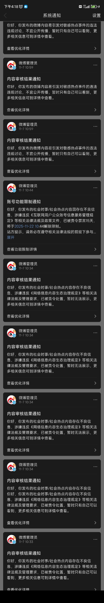 别老问我怎么微博不说话了, 被封了啊!能因为什么??? 我的微博,前阵子因为说 养老金不公平问题,全部被封了, 现在言论管控越来越严,微博上几乎任何社会性话题,都不让说了, 基本只让你聊吃喝玩乐,把人当猪养了。