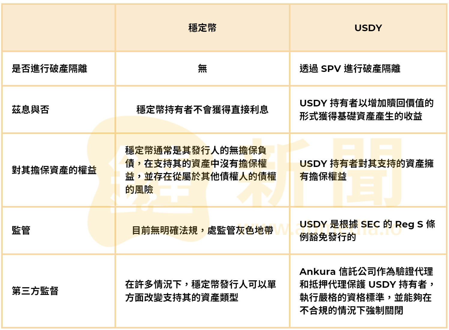 USDY 代表Ondo USDY LLC 发行的债务,Ondo USDY LLC 是Ondo Finance 全资拥有的 SPV 特殊目的工具,由包括独立董事在内的董事会管理,旨在最大限度地提高破产隔离性。