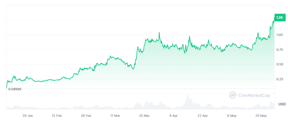 ONDO 在今年 1 月 18 日终于解锁流通,近期又搭上 RWA (现实世界资产) 的话题,自一月以来涨幅超过14倍。