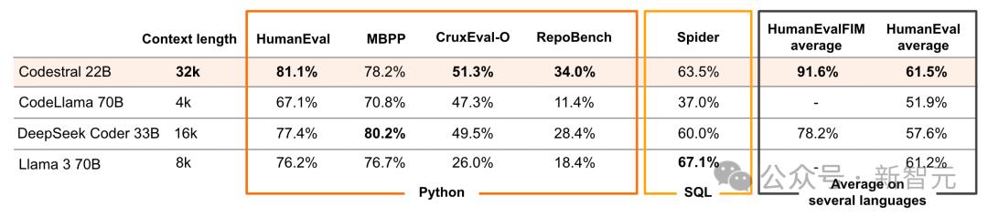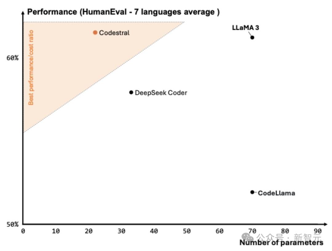 作为一个参数量只有22B的模型,Codestral实现了32K的长上下文窗口,是Llama 3 70B的四倍。