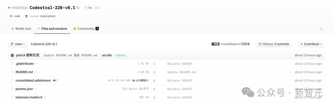 项目地址:https://huggingface.co/mistralai/Codestral-22B-v0.1/tree/main